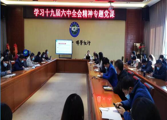 2021年12月30日下午,在呈贡校区崇德楼501会议室,副校长祁苑红给所在党支部及分管部门教职工宣讲十九届六中全会精神。