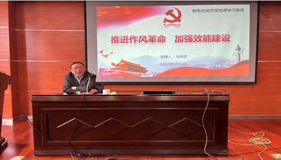 2022年5月12日下午,财务处党支部在呈贡校区崇德楼122会议室开展作风革命、效能革命专题党课,此次党课邀请马学成同志讲授,财务处全体同志参加了党课学习。