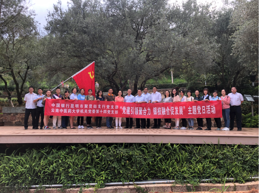2020年7月30日下午,机关第十四党支部在西山区海口林场开展“党建引领聚合力 银校融合促发展”主题党日活动。云南中医药大学机关党委第十四党支部党员、计财处非党员同志、以及中国银行聚贤街党支部及呈贡支行党员代表、入党积极分子30余人参加了此次活动。