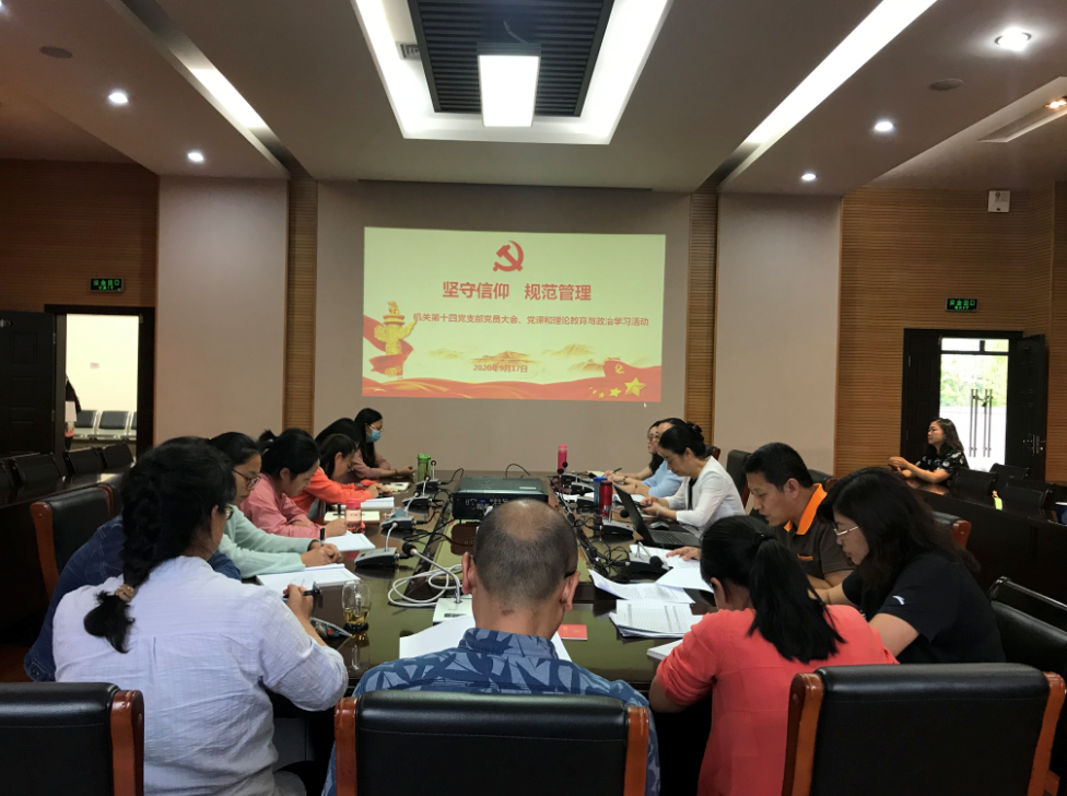 2020年9月17日下午16点至18点,机关第十四党支部在呈贡校区崇德楼123会议室开展9月党员大会及党课学习活动,此次活动邀请计财处非党员同志参加。