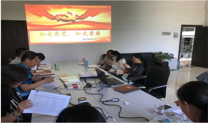 2021年4月15日下午,机关第十四党支部在呈贡校区崇德楼219会议室开展“知史爱党,知史爱国”主题党日活动,支部全体党员参加了此次活动,同时邀请部门非党员同志也参加学习。