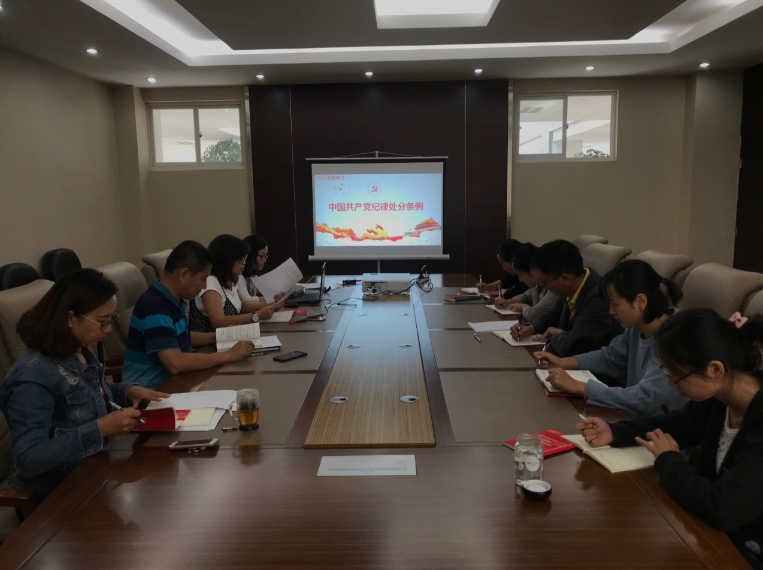 9月7日下午,机关党委第十四党支部在崇德楼411会议室开展深入学习贯彻《中国共产党纪律处分条例》主题党日活动,此次活动由支部书记张熙同志主持,计划财务处全体党员参加了学习交流。