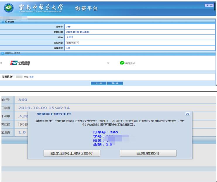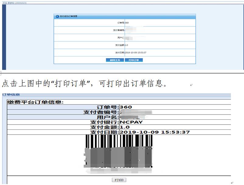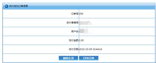 缴费成功后,系统会产生相应的订单信息。学生可打印留存“缴费平台订单信息”。